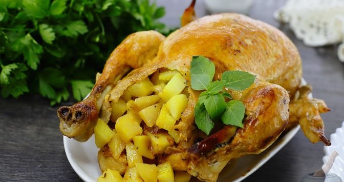 Курка, фарширована молодою картоплею