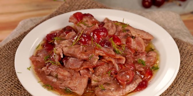 Страва нереально апетитна та смачна. Тушкована курка з вишнею, беконом та вином точно Вам сподобається. Такою стравою можна сміливо пригощати гостей. Вона дуже ароматна й ситна.