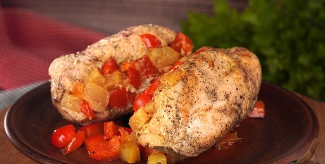 Таке куряче філе можна подавати до святкового столу. Страва нереально ароматна та смачна. Куряче філе, запечене з ананасами та солодким перцем, точно сподобається всій сім’ї.