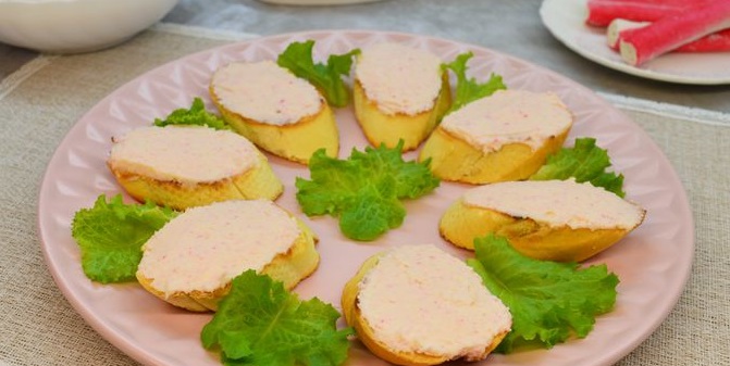 Тости з паштетом з крабових паличок та плавленого сиру