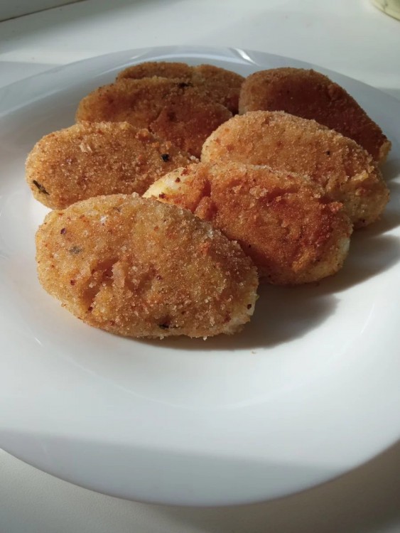 Формуємо з суміші котлети та обвалюємо їх в панірувальних сухарях. Смажимо до готовності. Готові котлети викладаємо на паперовий рушник та подаємо до столу. Смачного!