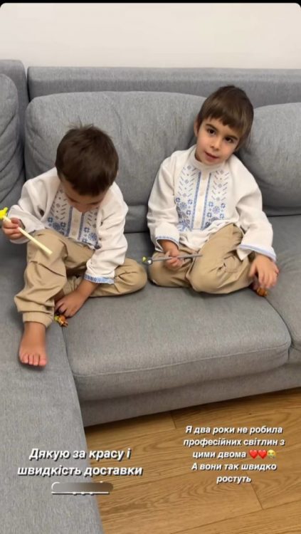 Перед камерою вони постали у традиційному українському вбранні. Сини Джамали позували у вишиванках та мило усміхались. А ще вони були одягнені у штани однакового кольору. Сини співачки зображені на дивані. Хлопчики весело грались, насолоджуючись моментом.