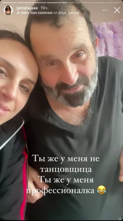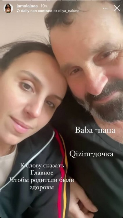 Перед камерою Джамала постала без макіяжу та у спортивній кофті. Батько співачки позував у футболці чорного кольору. Джамала розсекретила, що наразі він почувається добре.