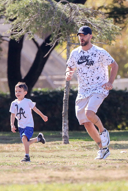 Приводом для сімейної прогулянки стало заняття по бейсболу, якому і навчав сина Джастін. Але, крім цього, їм вистачило часу і для невеликого пікніка, а також дружнього забігу, який влаштували Джастін та Сайлас.