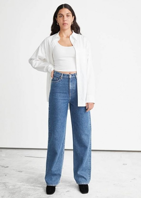 Ці вінтажні прямі джинси із завищеною талією, як і раніше, залишатимуться одним із найпопулярніших джинсових трендів серед модної публіки. Такі варіанти виглядають дуже сучасно та елегантно, тож не вагайтеся і негайно поповніть свій гардероб цією моделлю.