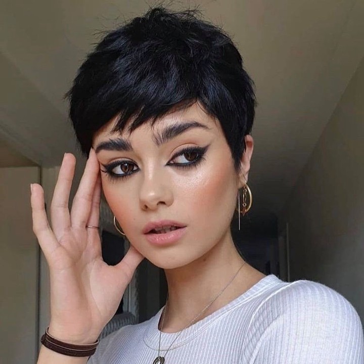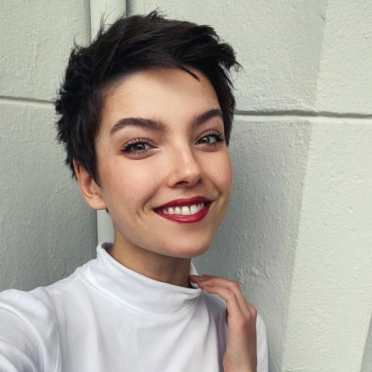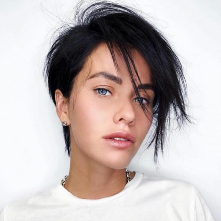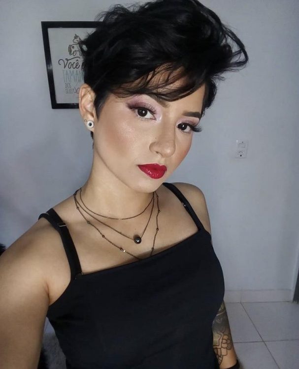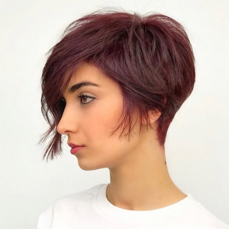 Піксі – це найяскравіша стрижка для тих жінок, які віддають перевагу комфорту і стилю в одному образі. Піксі в класичному варіанті найчастіше фарбується платиновим кольором, але стилісти пропонують подивитися на зачіску під іншим кутом. Дуже виразний і по-справжньому розкішний образ виходить, якщо модну коротку піксі оформити в темному фарбуванні. Колір сильно не відіграє ролі, це можуть бути відтінки шоколаду, каштана та звичайний чорний. Головне – це зробити однотонне фарбування без додаткових ефектів з іншими тонами.