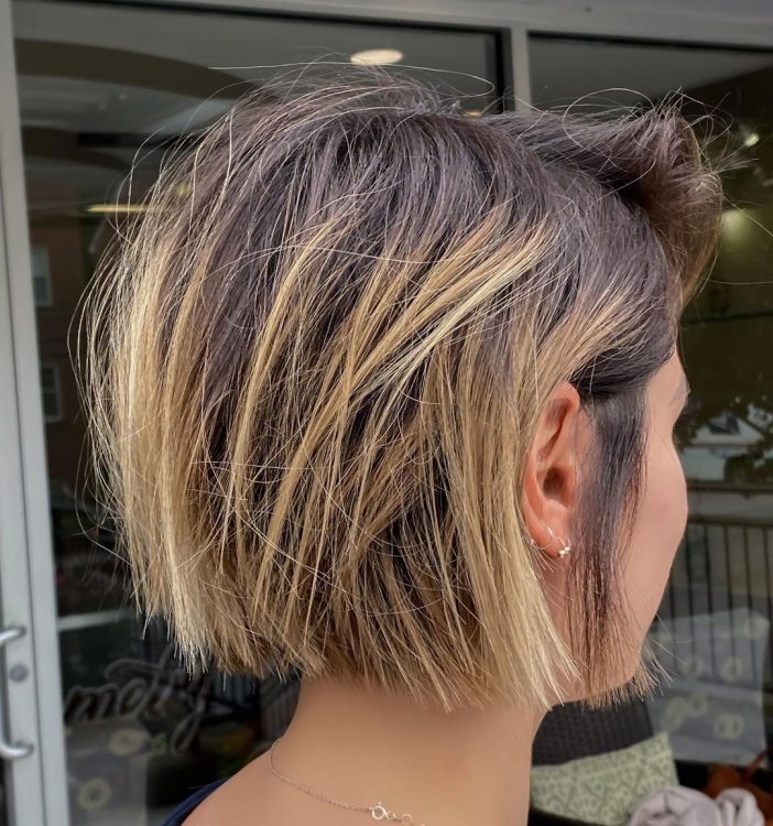 Ідеальне поєднання для стильних модниць – це брондування на короткому каре. За рахунок пасм різного кольору та абсолютно рівного зрізу жінка отримає дуже витончений образ.