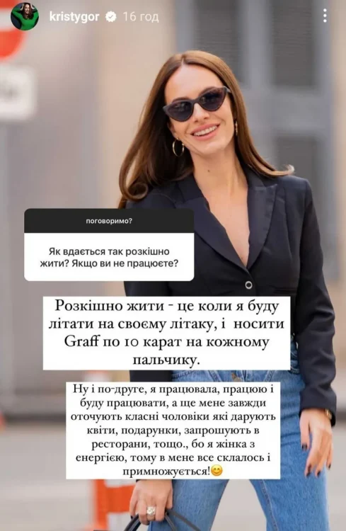 Відомо, що наразі нотаріусиня тимчасово не працює. Втім, Христина Горняк повністю забезпечує своє життя. Колишня дружина Володимира Остапчука із задоволенням дала відповідь на запитання фоловерів. В Instagram-stories вона зауважила, що має заробіток, тому часто отримує кошти.