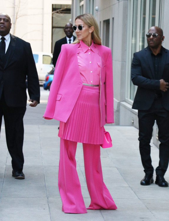 Рожевий символізує чутливість і ніжність. Він нагадує про дитинство, тому завжди викликає теплі емоції. При цьому відтінки рожевого можуть виглядати помітно й зухвало. Цей колір в різний час переживав злети і падіння: він то пропадав, то знову з’являвся на модних показах. У цьому сезоні рожевий знову на піку популярності, тому сміливо додавайте його в свої образи, надихаючись тотал-луком Селін Діон.