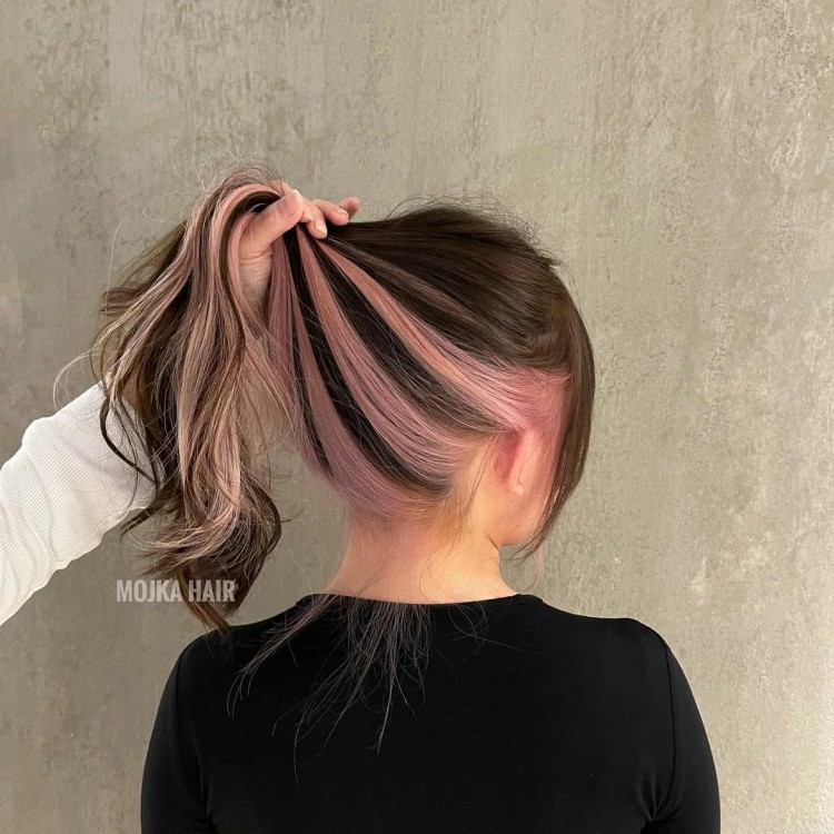 Темне волосся можна змінити максимально ефектними яскраво-рожевими пасмами волосся.