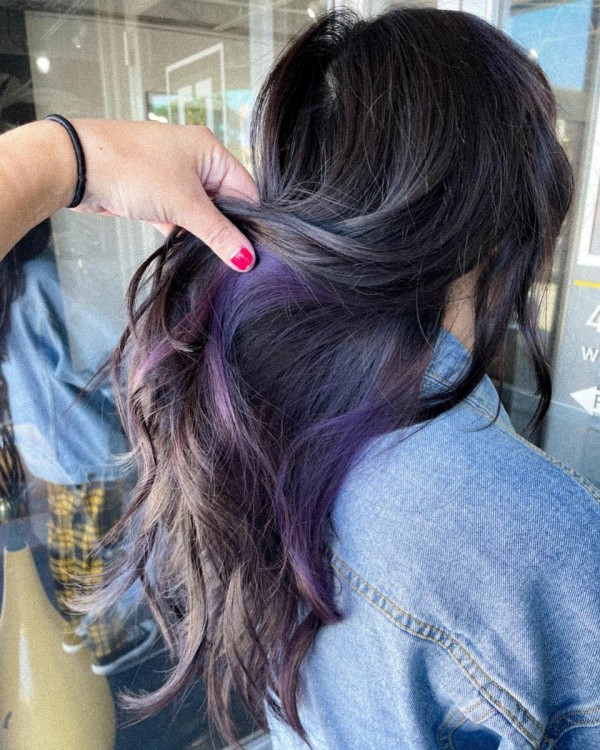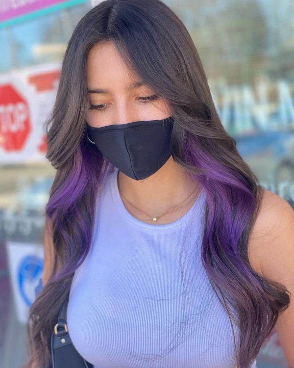 Фіолетові нижні пасма + темна основа – гармонійне поєднання на сьогоднішній день.