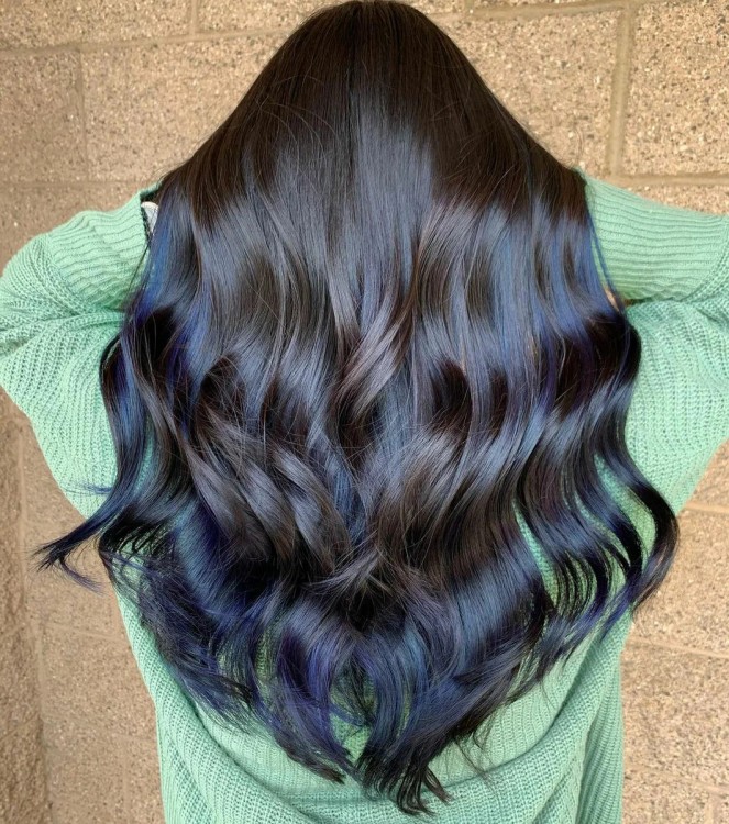 Комплементарний смарагдовий і синій відтінок + вугільного кольору волосся – комбінація, яка припаде до душі справжнім бунтаркам. Почати своє знайомство з актуальним фарбуванням можна з нейтральних відтінків, поступово додаючи їм яскравості та контрастності.