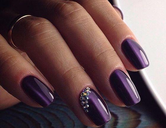 Будь-які елементи декору приголомшливо виглядають на фіолетовому кольорі, а сам манікюр можна зробити як святковим, так і повсякденним, в залежності від вашого бажання.