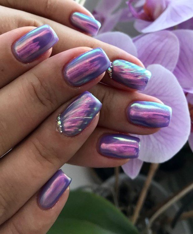 Манікюр із втіркой досі вважається найстильнішим та найцікавішим, і не просто так: він підходить навіть для нігтів будь-якої форми. За допомогою спеціальної пудри-втірки можна створити як ефект металевих нігтів, так і модний голографічний.