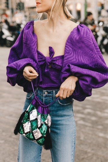 Баклажановий був помічений на показах Givenchy, Victoria Beckham, Balmain, Marta Jakubowski та багатьох інших брендів. А вже зараз знамениті гості Тижнів моди вчать нас включати фіолетовий у свій повсякденний гардероб.