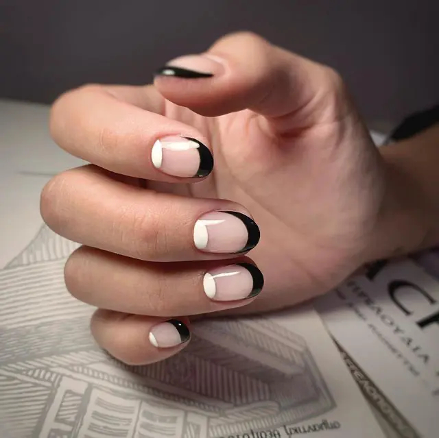 Проте, з роками дещо змінилося, як виглядає французький манікюр. Тепер типовий білий колір можна замінити будь-яким іншим. Чорний французький манікюр зараз відомий як гарячий тренд, що виділяється у поєднанні з лаками тілесних відтінків.