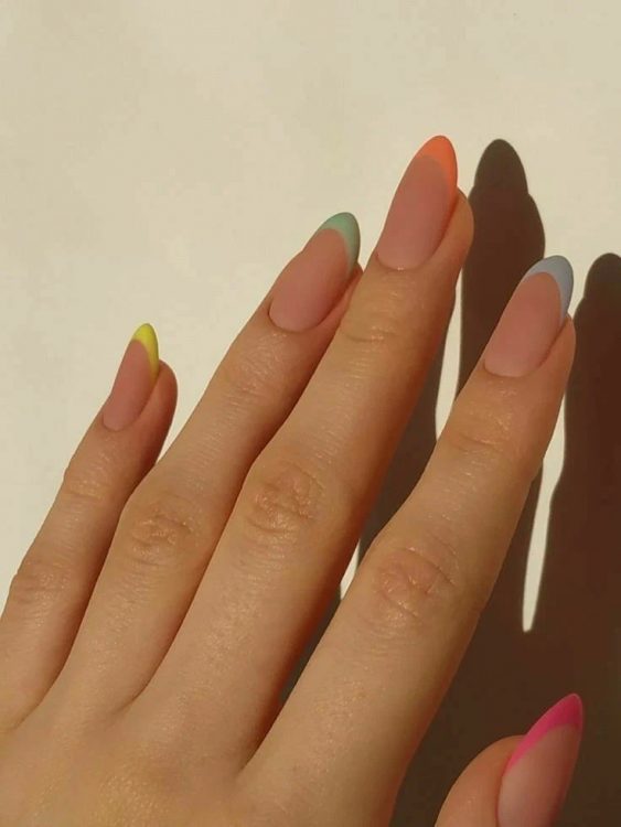 Це схоже на звичайний френч, але ви подивіться, який барвистий манікюр вийшов! Цей варіант чудово підійде для літа, коли хочеться яскравих барв.