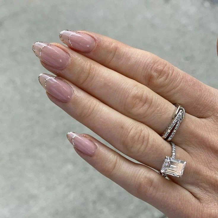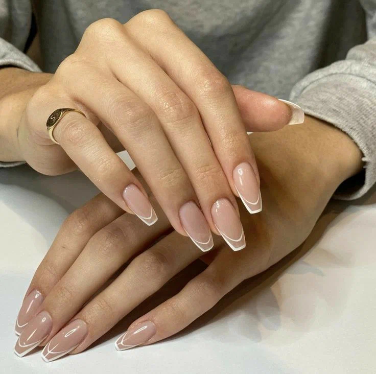 Цей манікюр більше нагадує звичайний френч. Але, як ви бачите, внутрішній простір тут не наповнений лаком. У цьому є певна особливість. А взагалі, цей дизайн набирає популярності.