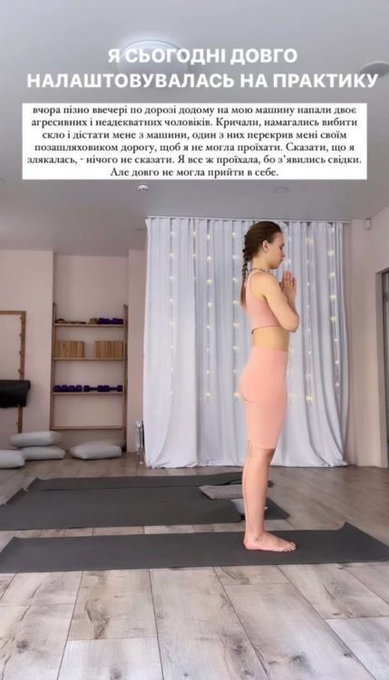 Зірка українського шоу-бізнесу відверто зізналась, що дуже злякалась. За словами акторки, раніше вона ніколи не опинялась в таких ситуаціях. Ганна Кошмал ще довго не могла прийти до тями. Вона неабияк щаслива, що все обійшлося саме так. Після ситуації з неадекватними чоловіками акторка вирішила зняти стрес, тому відправилась на йогу.