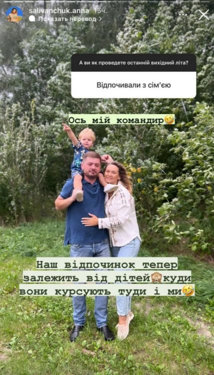 За словами акторки, ця світлина була зроблена під час сімейного відпочинку. А ще Ганна Саліванчук пожартувала, що її дозвілля залежить від дітей. Фоловери засипали зірку приємними словами та повідомили, що в неї чудова сім’я.