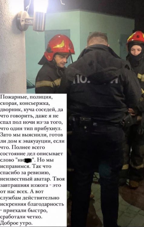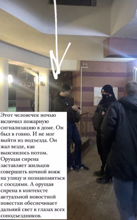 Пізніше виявилося, що сигналізація увімкнулась через витівку п’яного чоловіка. Незнайомець не міг знайти вихід, тому почав натискати на всі кнопки у під’їзді.