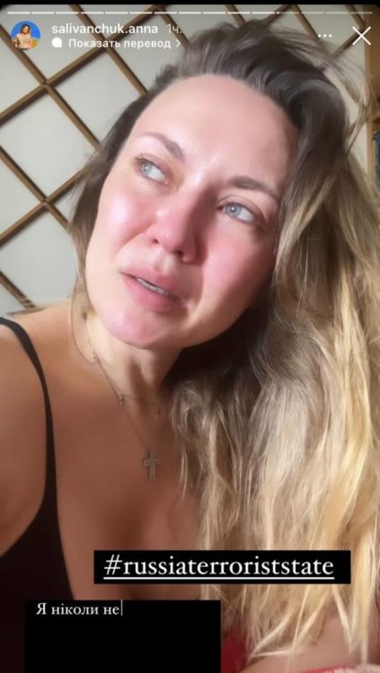 Відома акторка Ганна Саліванчук теж не залишилась осторонь. Вона зі сльозами на очах прокоментувала нічний обстріл Києва. В Instagram-stories жінка розплакалась та висловила неабияку ненависть до росіян. Ганна Саліванчук не може спокійно реагувати, коли вбивають дітей та ні в чому невинних людей.