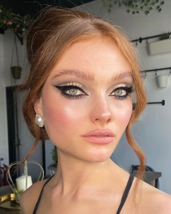 А ось тут візажист пройшовся перламутром тільки по внутрішніх куточках ока. Дівчата з мідним відтінком волосся, беремо на замітку!