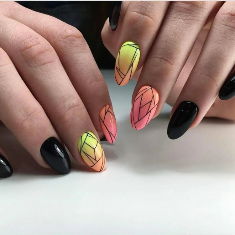 - negative space – техніка нанесення, при якій частина нігтя залишається не зафарбованою;