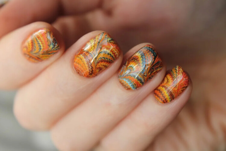 - мармуровий манікюр восени виконується так само в модних осінніх відтінках і виглядає чудово;