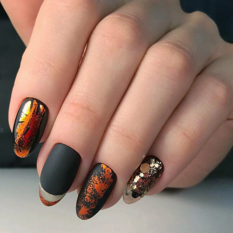 - манікюр з глітером, блискітками, каміфубуками – це відмінний привід зробити ваш осінній манікюр більш блискучим;