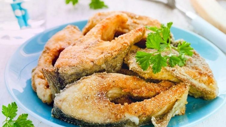 Борошно змішуємо з панірувальними сухарями. Викладаємо туди рибу та перемішуємо. Сковорідку змащуємо маслом. Викладаємо рибу та смажимо до рум’яної скоринки. Смачного!
