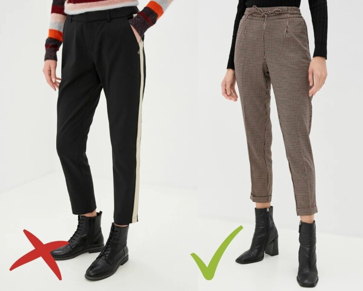 Штани з лампасами застаріли як мінімум візуально: в них немає жодного натяку на жіночність та елегантність. Якщо вам хочеться придбати штани з “родзинкою”, рекомендуємо звернути увагу на моделі з клітинкою. До речі, клітинка в цьому сезоні – один з головних трендів. Цей принт є символом благородства і стриманості.