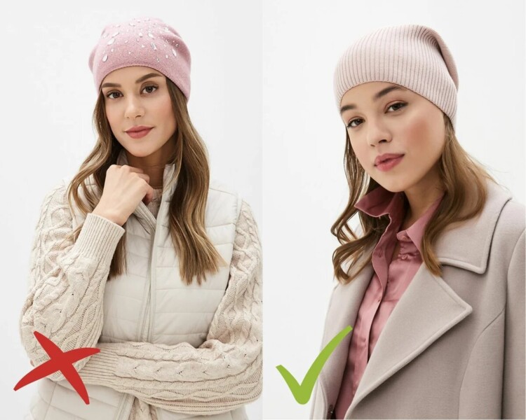 Років 3-4 тому було модно носити шапки зі стразами – чим більше, тим краще. Не відомо, чому цей сумнівний аксесуар зміг завоювати таку популярність, але радимо ніколи його не купувати. Але якщо така модель вже є у вашому гардеробі, то далі магазину за рогом нікуди в ній краще не виходити. Замість неї віддайте перевагу непомітним моделям без зайвих деталей.