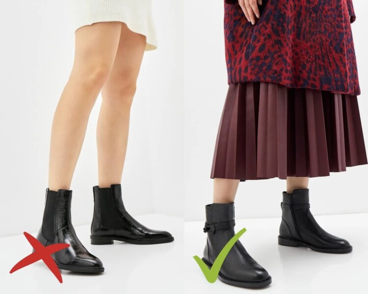 Взуття з гострим носком – лідер в списку антитрендів, проте, все ще користується полярністю в жіночому гардеробі. У подібному взутті нога відчуває себе некомфортно і виглядає дивно. Замінити можна звичайними чобітьми з круглим носком – актуально і практично!