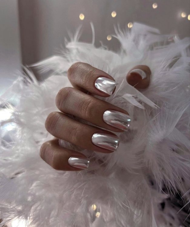 Несподівано, але однотонний металізований манікюр знову повернувся в моду. Але є одне “але” – виключно у срібному кольорі.