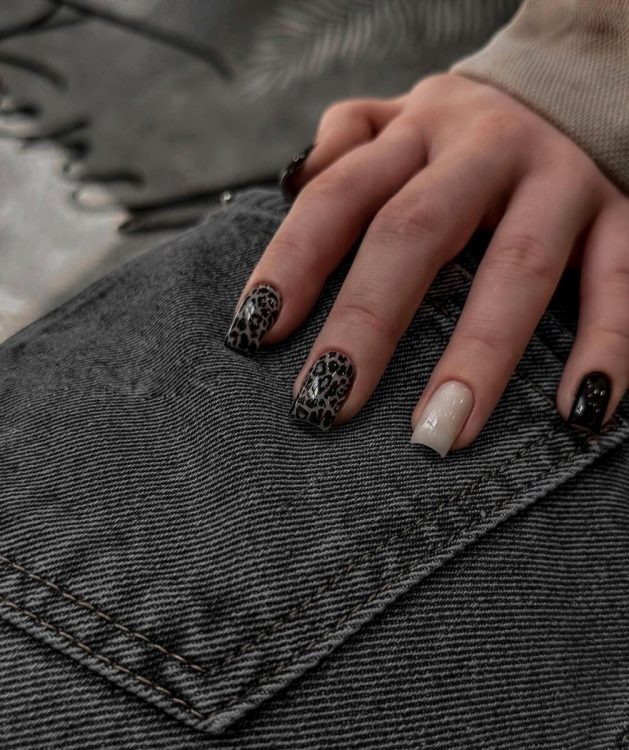 Квіти та інша флористика ніколи не зіпсують ваш манікюр, якщо ви зробите вибір на користь ніжних і спокійних малюнків взимку, і трохи яскравіших в теплу пору року. Крім цього, продовжує займати лідируючі позиції анімалістика. “Леопардові” нігті виглядають цілком стримано, якщо манікюр виконаний у спокійних відтінках.