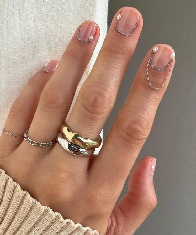 Популярність 3D-манікюру, де рельєф створювався за допомогою спеціального гелю, у 2023 році зійшла нанівець, проте взагалі відмовлятися від об’ємних прикрас ми не будемо. Восени на піку популярності буде металевий декор, на зразок ланцюгів, кілець та інших незвичайних елементів. Звичайно, базовим та універсальним такий манікюр не назвеш, проте він може стати чудовим варіантом для особливого виходу. Особливо якщо схожі металеві елементи будуть на вашому одязі.