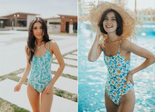 1. Тропічний і квітковий принт абсолютно не виходить з моди. А такий дизайн дає незамінну атмосферу відпочинку. Та й в цілому, даний купальник можна сміливо назвати “інстаграмним”. Це принт з пальмами, тропічним зеленим листям і квіточками абсолютно будь-яких розмірів.