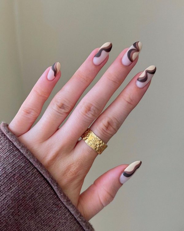 Коли ще робити “кавові” манікюри, якщо не восени, адже цієї пори кожного дня хочеться гуляти з чашкою лате і шарудити листям у парку, Актуальні будь-які кавові та шоколадні відтінки – від найніжніших до насичених, майже чорних. Їх можна використовувати для різних дизайнів – від френча до омбре.