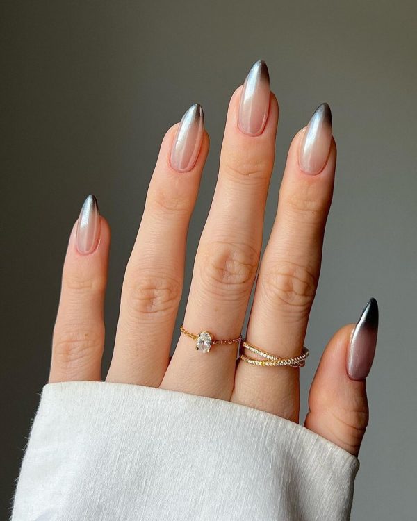 Такі нігті, напевно, сподобалися б Ельзі з “Холодного серця”: вони нагадують полярне сяйво. Саме тому манікюру в стилі “котяче око” пророкують велике майбутнє не лише восени, а й взимку-2023. Його можна робити і на короткі, і на довгі нігті, а ось форма найбільше підійде квадратна.