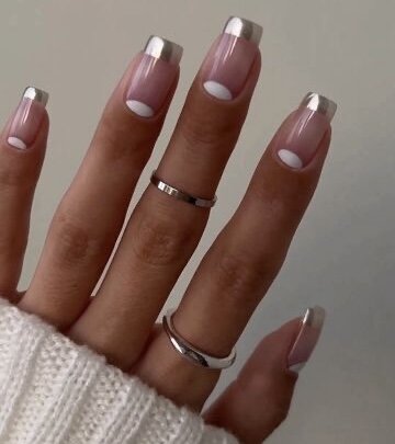 Цей тренд впевнено закріпився у 2023 році. Але спочатку до нього поставилися з певною недовірою, адже дизайни доволі часто були занадто футуристичними. Пізніше нейл-майстри знайшли певний баланс між ртутними та золотими відтінками.