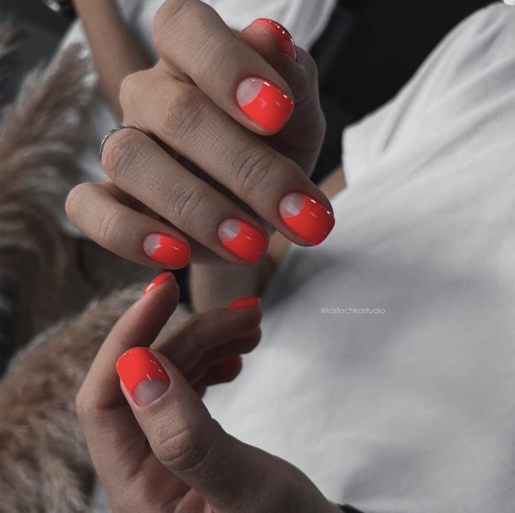 Як ми вже писали вище, червоний френч – це просто “підпал” і поєднання двох трендів одразу.