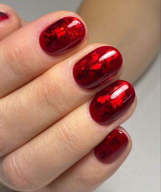 Можна додати червоні блискітки і пограти з топом: глянсовий і матовий виглядатимуть просто бездоганно.