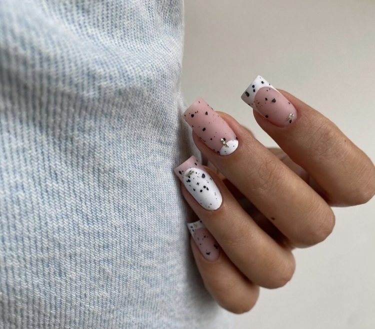У персивовий манікюр можна додати і тренд на блискітки або цятки. Замість глянсового використовувати матовий топ, що надасть ще більше ніжності манікюру.
