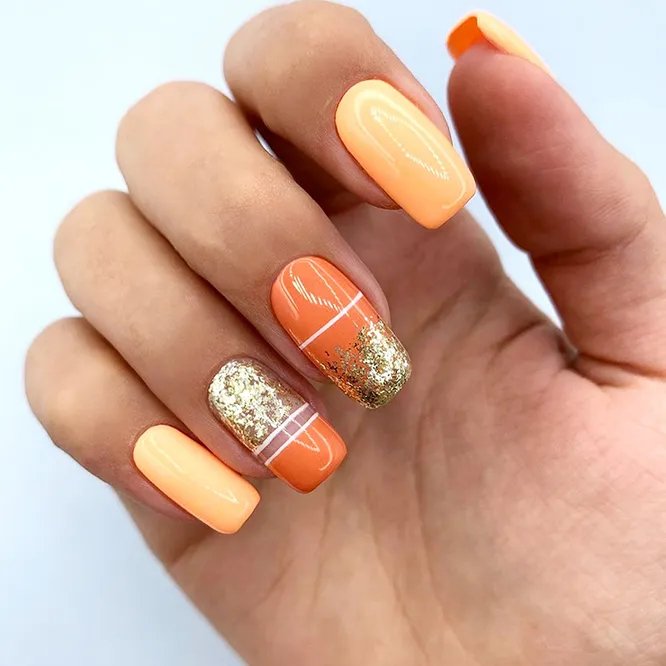 Ще один варіант для осіннього манікюру – геометричні малюнки. Необов’язково вибирати яскравий тон, можна зробити покриття в пастельних тонах. Такий дизайн візуально подовжує нігті, тому підійде жінкам, які мають коротку довжину, збалансувавши пропорції.