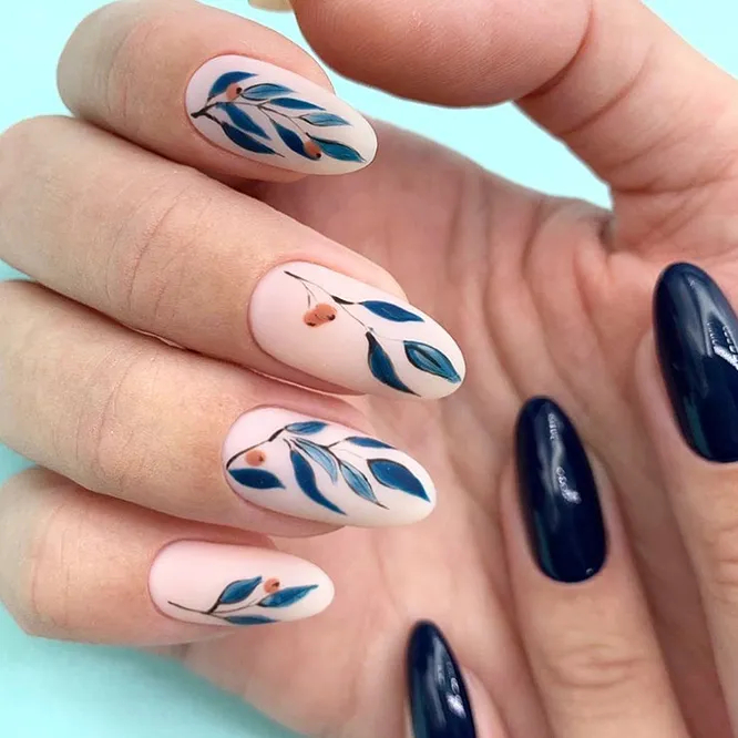 Восени можна побалувати себе ілюстрованими елементами – листям, деревами, лисичками або іншими тваринами – розмістити такі малюнки на кожному нігті або безіменних пальцях, що виглядатиме дуже незвичайно і мило. Поекспериментуйте з пастельними відтінками, поєднуючи їх із більш глибокими та темними.