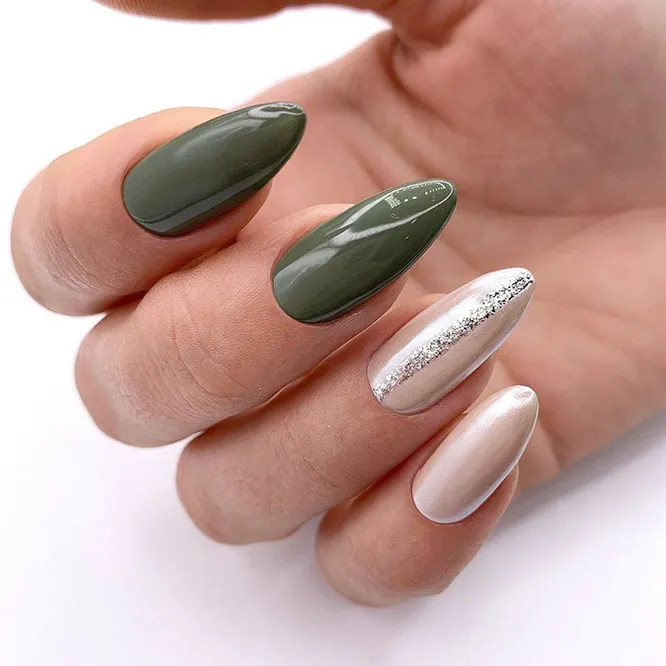 Також актуальними є приглушені варіації зеленого — оливковий, хакі, болотний. Однак із зеленим треба бути обережнішими. Цю гаму варто підбирати індивідуально – за кольоротипом шкіри. Якщо вона бліда, краще звернути увагу на бірюзовий колір, а теплий зелений залишити власницям засмаглих або смаглявих рук.