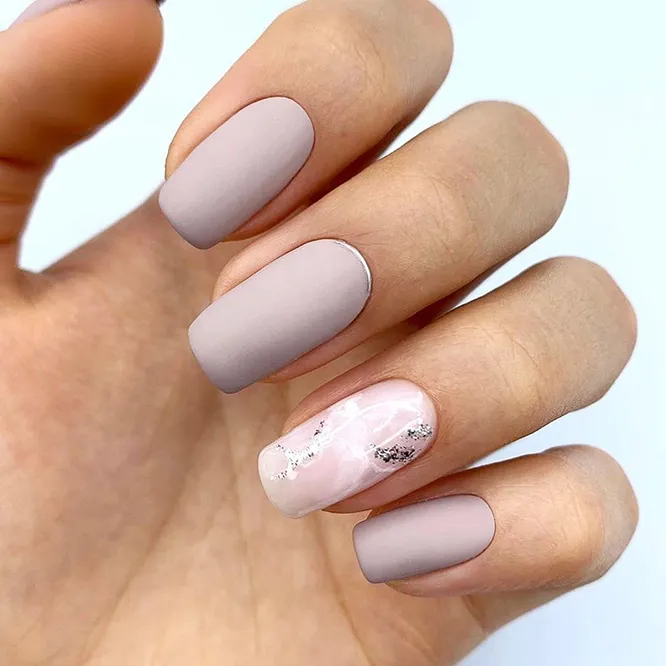 Восени доречні будь-які пастельні та молочні відтінки, сірий, бежевий та ніжно-рожевий. Щоб урізноманітнити однотонне покриття, можна додати маленький дизайн. Наприклад, поставити крапку на безіменному пальці чи прикрасити кілька нігтів стразами. Модними акцентами може стати яскравий дизайн на кількох нігтях, мазки лаку чи мінімалістичні принти.