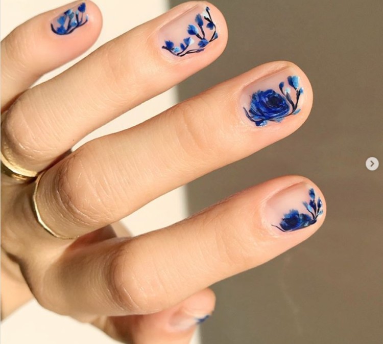 Нейл-арт з квітами може відповідати вимогам останнього тренду на мінімалізм. Акуратні витончені малюнки поєднуйте з прозорим покриттям і використовуйте близькі відтінки з однієї палітри.