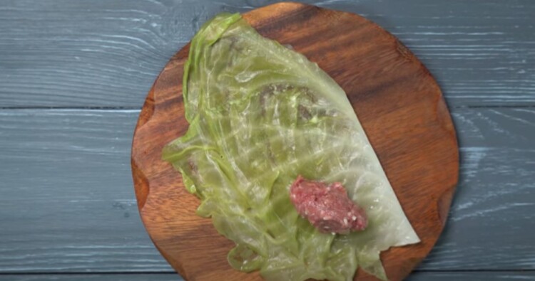Начинку викладаємо на капустяний лист і звертаємо трикутником.